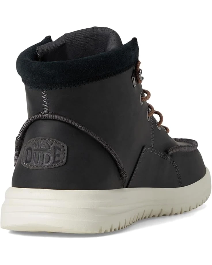 - Add a sporty touch to your looks wearing Hey Dude® Bradley Boot. Crafted with a cotton lining and a polyurethane insole, the ankle-high boots ensure lasting comfort. The water-resistant, premium leather uppers meet our lightweight, flexible rubber outsole for comfy, seasonal style.