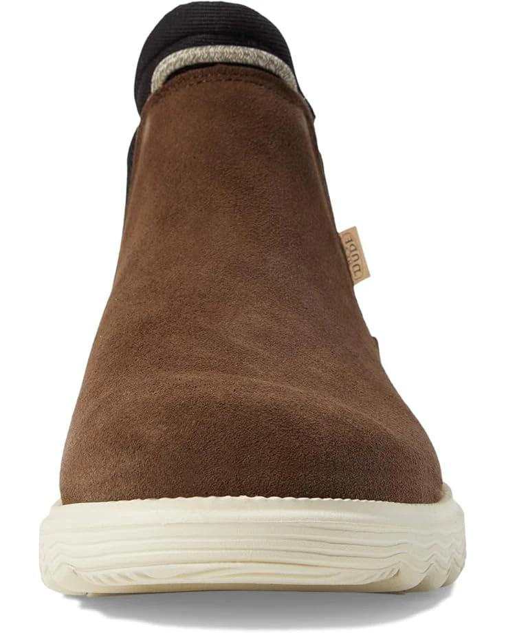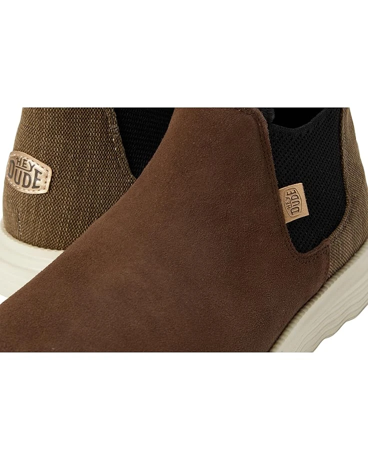 - Walk on the streets of the town in a new style by wearing Hey Dude® Branson Suede Boot. The boots are made of leather and textile upper, textile lining, and removable textile insole. A round-toe accent with elastic side gore panels makes it easy to pull-on.
