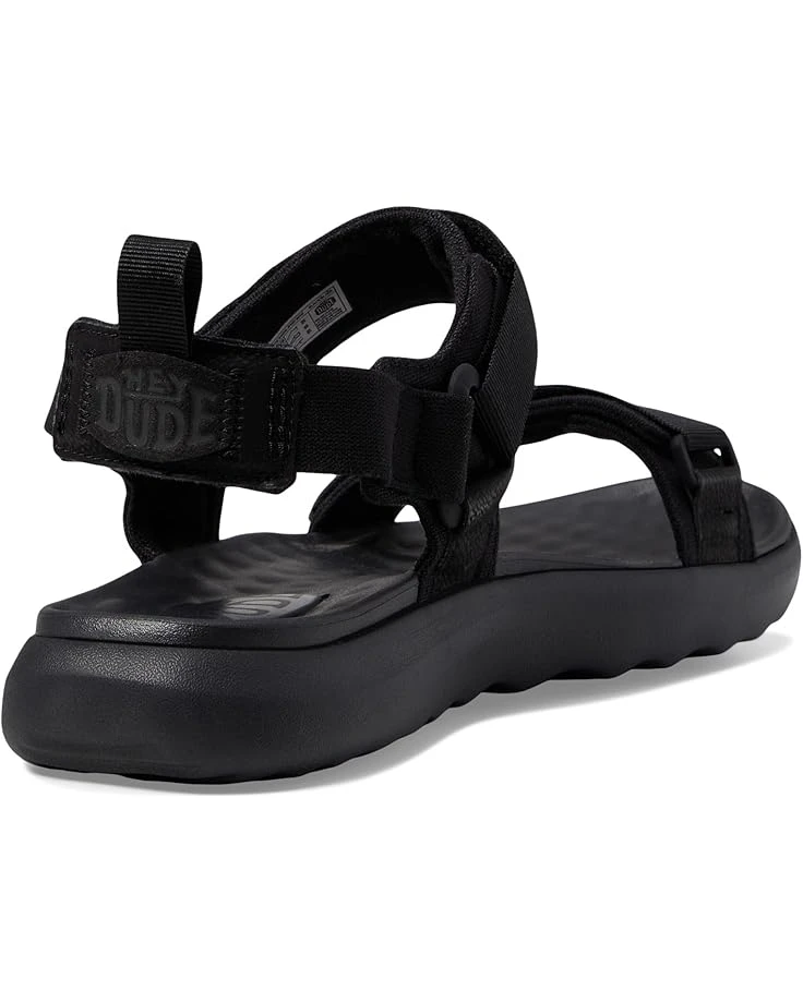- Perfect for casual outings or brisk walks, the Hey Dude® Carson Sandal Sport Mode boasts a simple design with loads of comfort features. These are constructed with a stretchy canvas, foam-backed upper with two adjustable hook-and-loop closures on the front straps and a stretch gore heel strap for an easy fit. Set on a high-rebound, foamy EVA insole with DUDEWAVES TECHNOLOGY footbed texture, the shoes offer superior cushioning comfort along with improved underfoot airflow for breathability.
