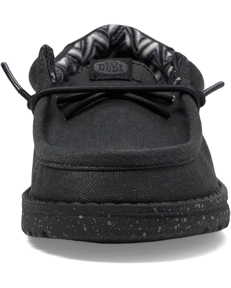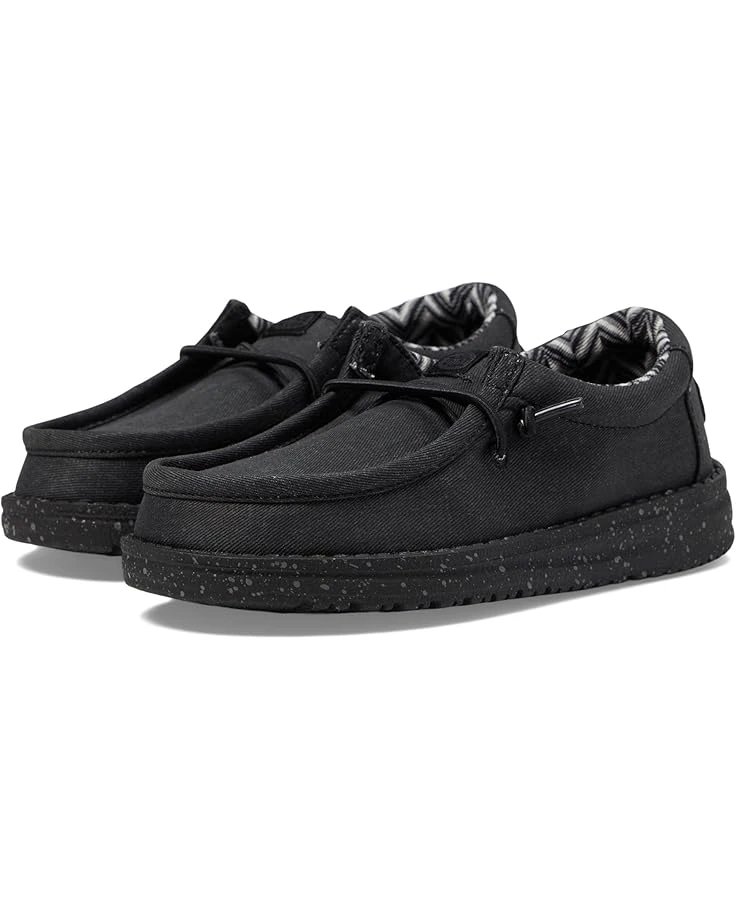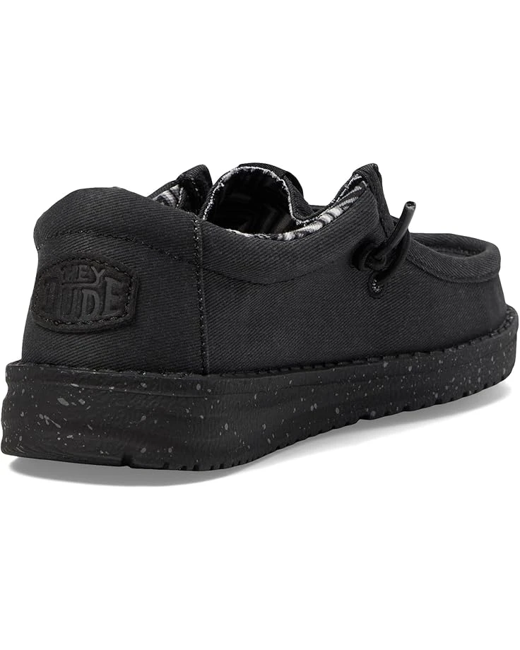 - Feel the best of comfort as you are walking on the clouds wearing Hey Dude® Kids Wally Canvas Loafers that are great fit for both casual walks as well as travel. The loafers support healthy feet with its unique shape giving complete freedom of movement and feature a lightweight construction with elastic lace closure. These are crafted with a canvas upper, cotton lining, and removable memory foam cushioned insole provides maximum comfort and reduces sweating.