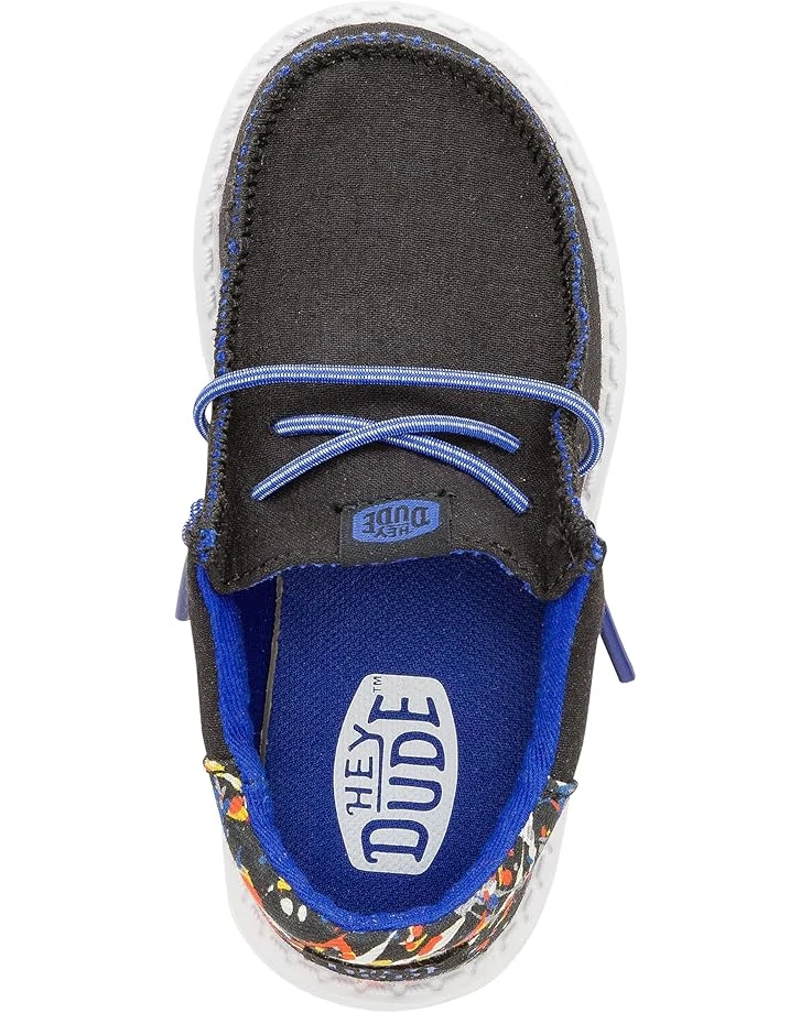 - Hey Dude® Kids Wally Funk Splatter: comfort, coolness, and fun in every step! These lightweight sneakers boast a bold splatter print that lets your child’s personality shine. Soft, breathable canvas upper and a cozy cotton lining keep feet happy all day long, while the removable Memory Foam® insole provides ultimate comfort. Elasticized laces ensure a snug, secure fit without the hassle of tying with leather insole, making them perfect for on-the-go adventures. The flexible rubber outsole offers superior grip, letting your little explorer conquer any terrain in effortless style.