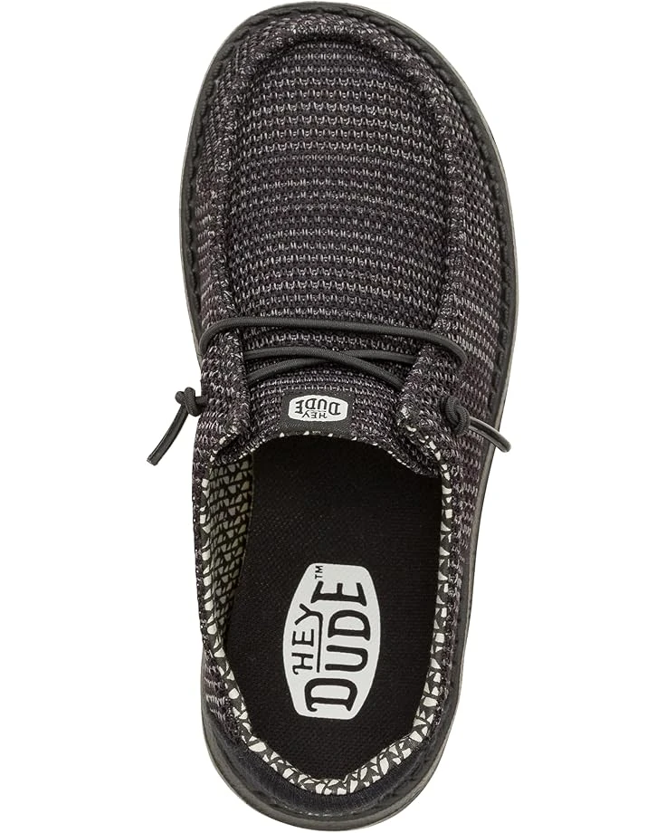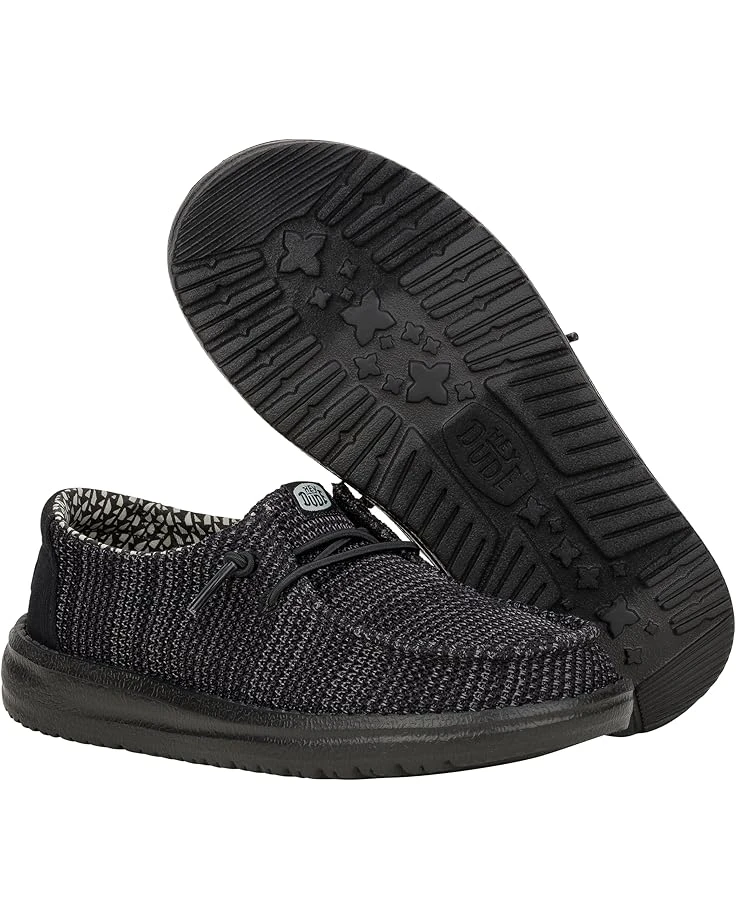 - Get your little one into the most comfortable shoes around choosing the Hey Dude® Kids Wally Stretch Sox! These shoes feature canvas upper, cotton lining, and leather insole for ultimate comfort. With the Flex & Fold technology, your child’s feet will have complete freedom of movement.