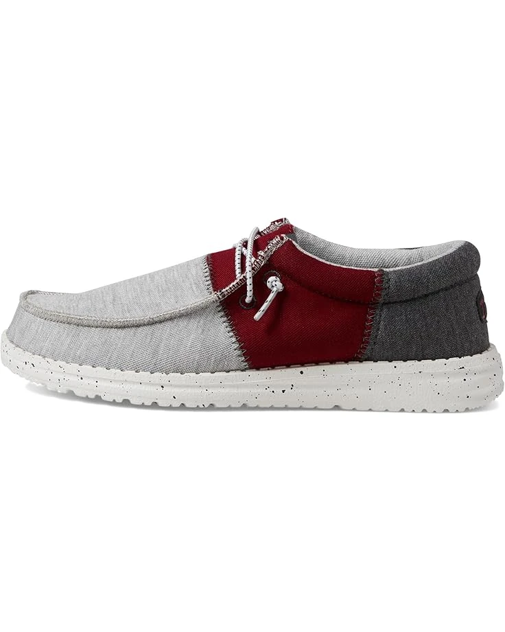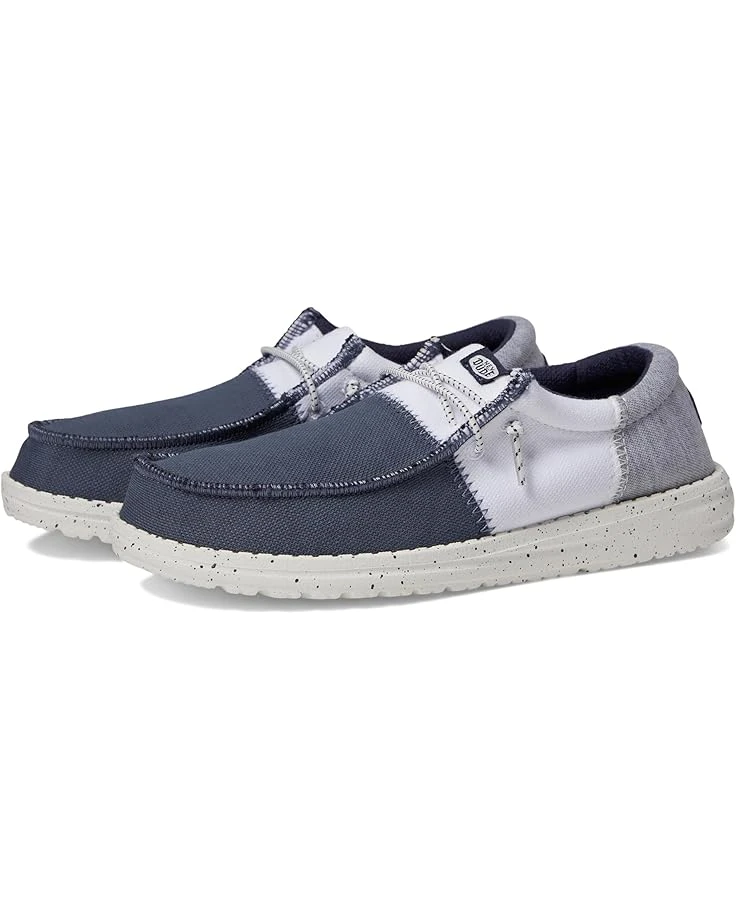 - Travel with confidence and style wearing the Hey Dude® Wally Tri-Varsity loafers. The casual shoes have a lightweight textile upper, breathable textile lining, and a cushioned insole. The loafers have a slip-on style with elasticized laces for comfortable wear.