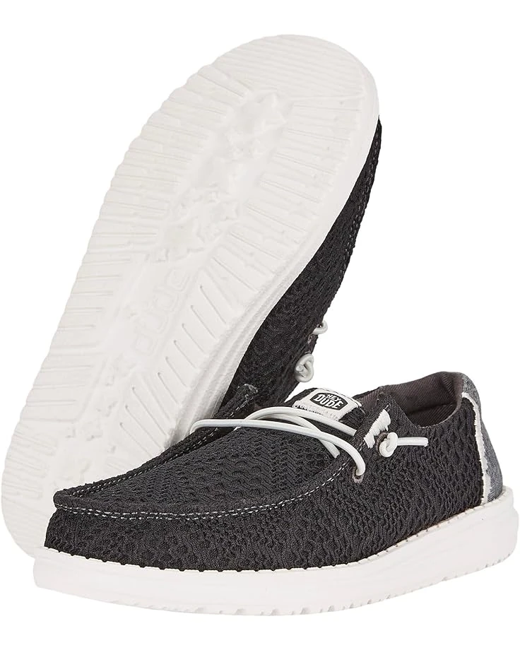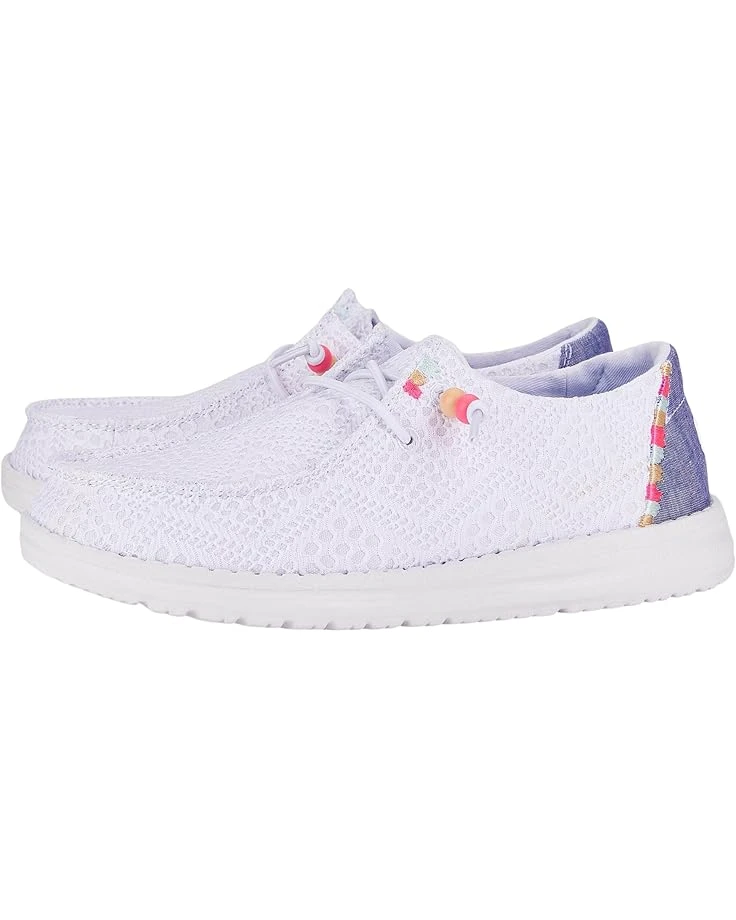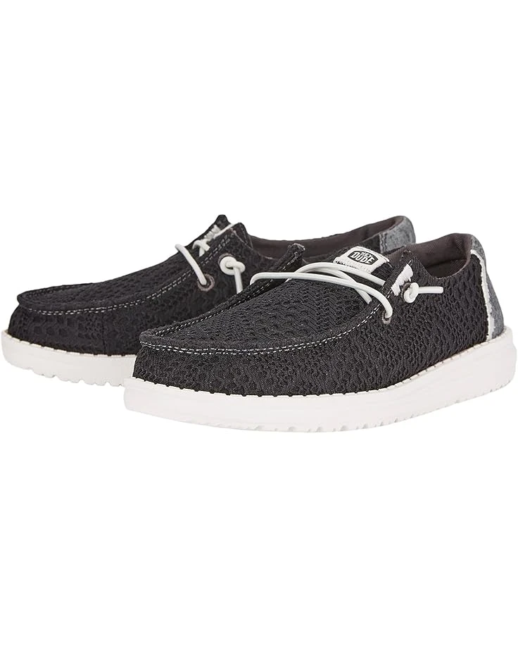 - Let your kiddo enjoy outdoor fun and freedom of movement wearing the Hey Dude® Kids Wendy Boho Crochet Sneakers. The pull-on footwear features textile upper and boho zig-zag stitching with classic rounded toe design in a low-top profile.