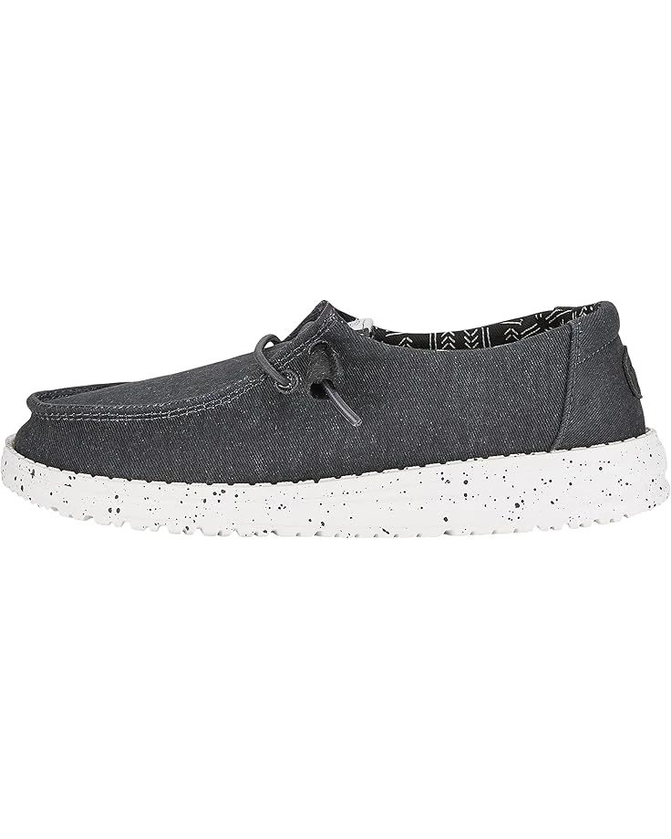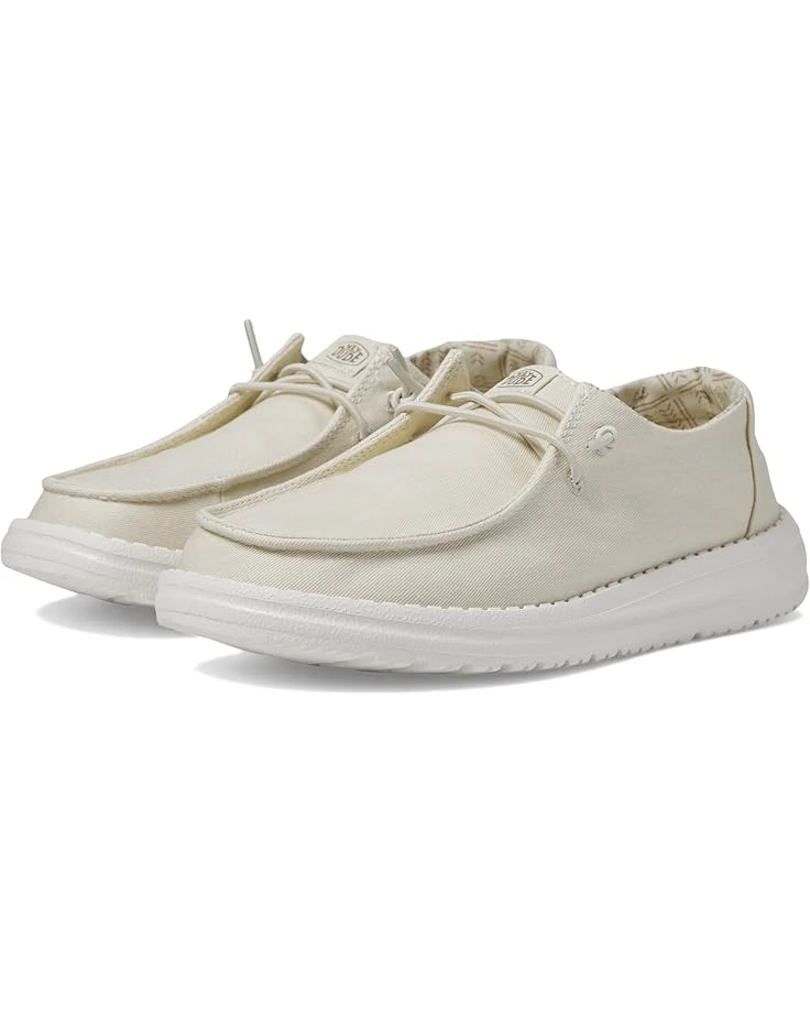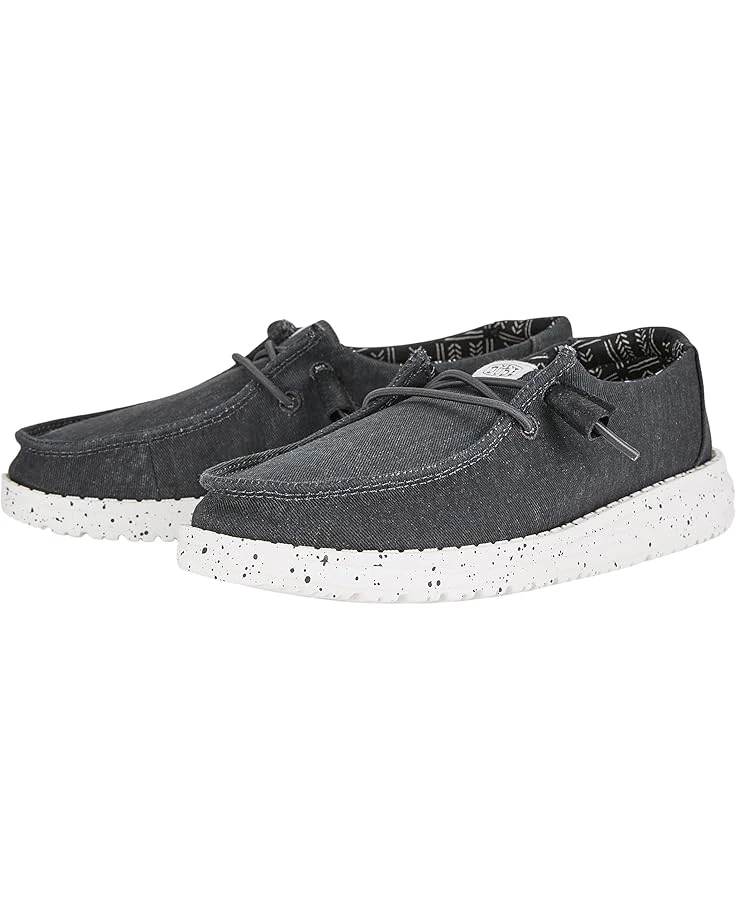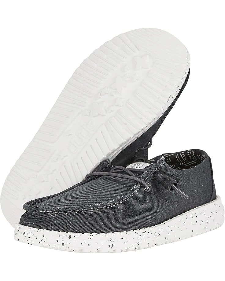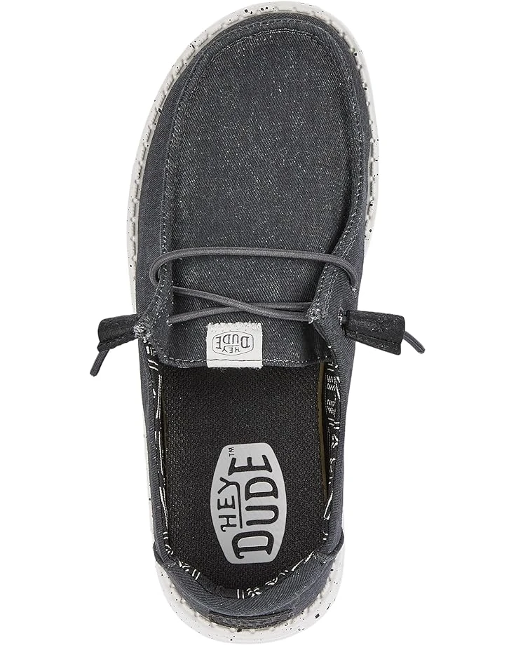 - Discover the Hey Dude® Kids Wendy Canvas, the coolest loafers for your little fashionistas! These trendy shoes boast a canvas upper that’s not only lightweight but also durable, making them perfect for all their adventures. The cotton lining ensures their feet stay cozy and fresh, while the removable memory foam cushioned insole provides unbeatable cushioning and support.