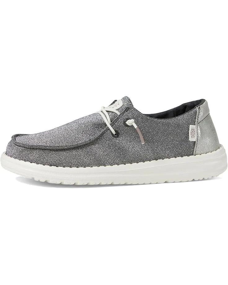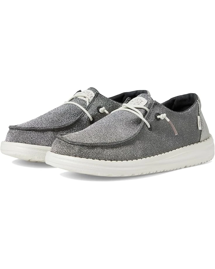 - Perfect for those busy feet, the Hey Dudeâ„¢ Kids Wendy Metallic Sparkle Loafers are built with a breathable textile upper, lining, and insole and feature an easy-on system with elasticized laces.