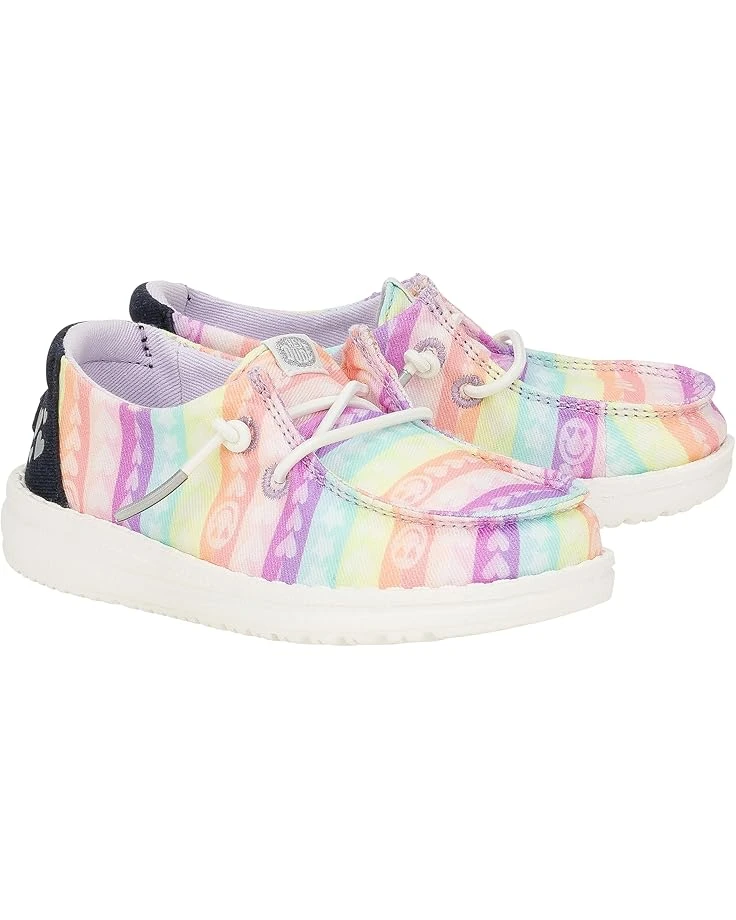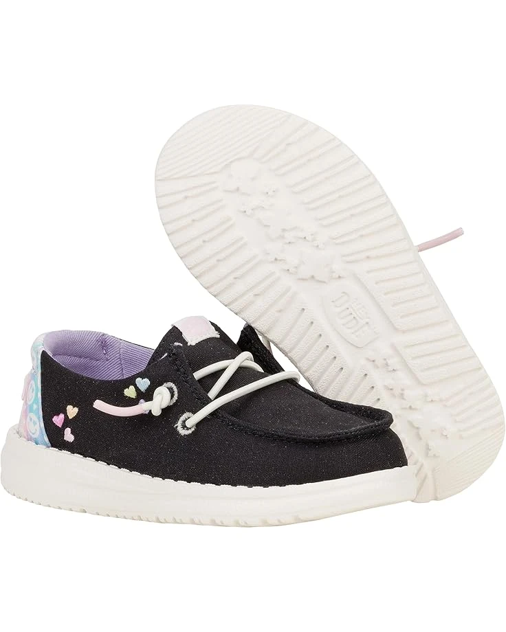 - Finesse your little one’s look by opting for the lightweight Hey Dude® Kids Wendy Sweet Treat Loafers. The low-top footwear features canvas upper with removable memory foam cushioned insole providing maximum comfort while reducing sweat and odor. The rounded toe design and Flex & Fold supports healthy feet with its unique shape giving complete freedom of movement.