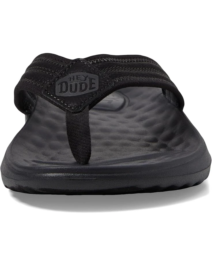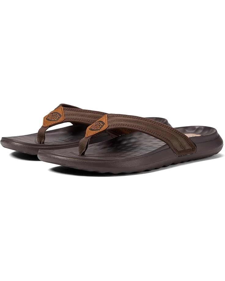 - Get ready to move out of the box wearing Hey Dude® Myers Flip Classic footwear. It features textile upper that molds to foot for snug fit and a toe-post design with slide-on style. A synthetic lining and DUDEWAVES TECHNOLOGY-Footbed Texture enhances comfort and improves underfoot airflow for breathability.
