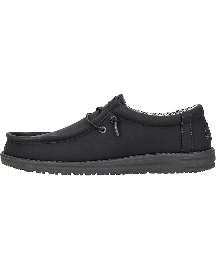 - What’s comfy, cool, and always on trend? Hey Dude® Wally Classic. Experience the epitome of comfort and fashion with its canvas upper, leather lining, insole, and rubber outsole. The rounded toe design and Flex & Fold technology promote healthy feet and unparalleled freedom of movement. Slip into lightweight bliss with elastic laces for a customized fit. Crafted from durable, high-quality materials, the Wally Classic ensures cloud-like comfort with odor-reducing insoles and breathable cotton fabric.