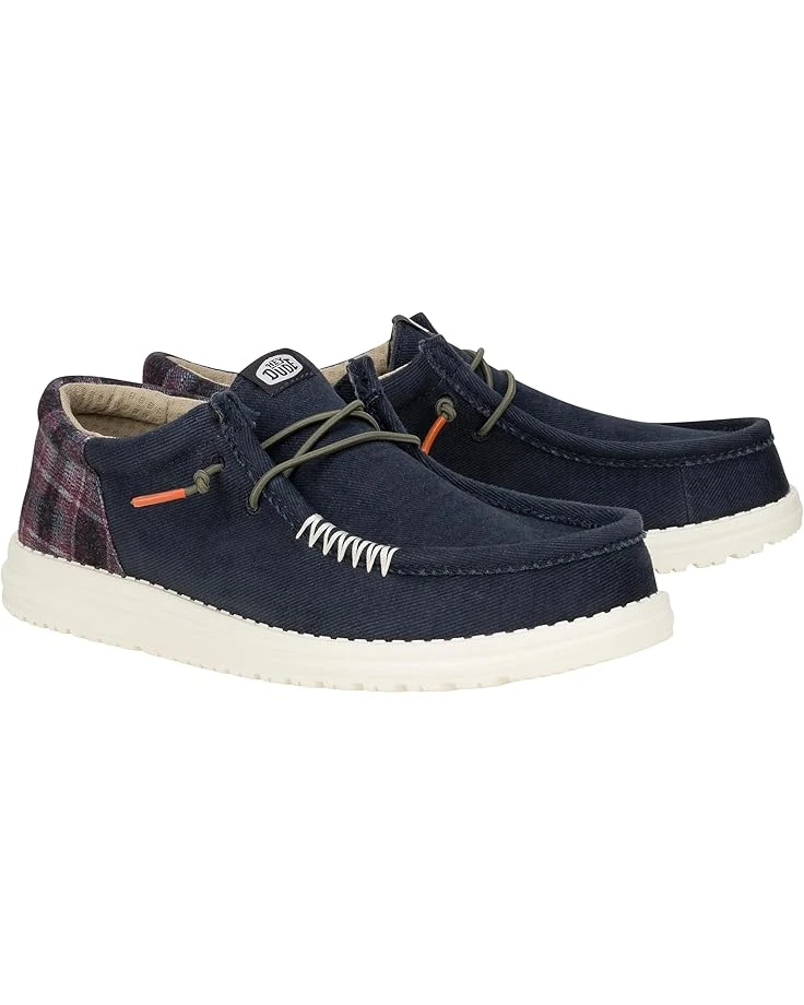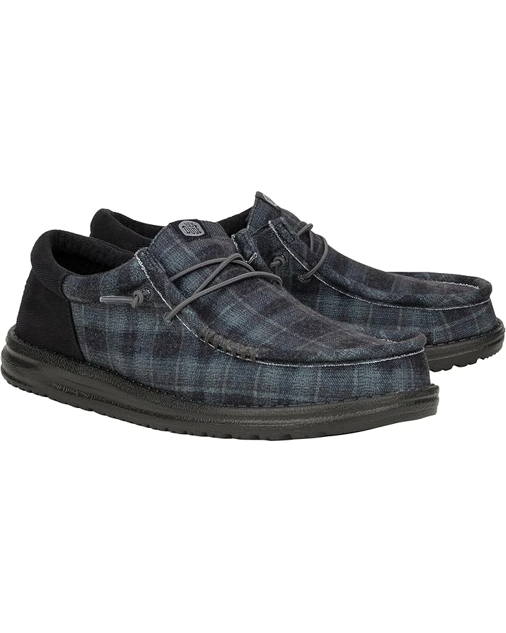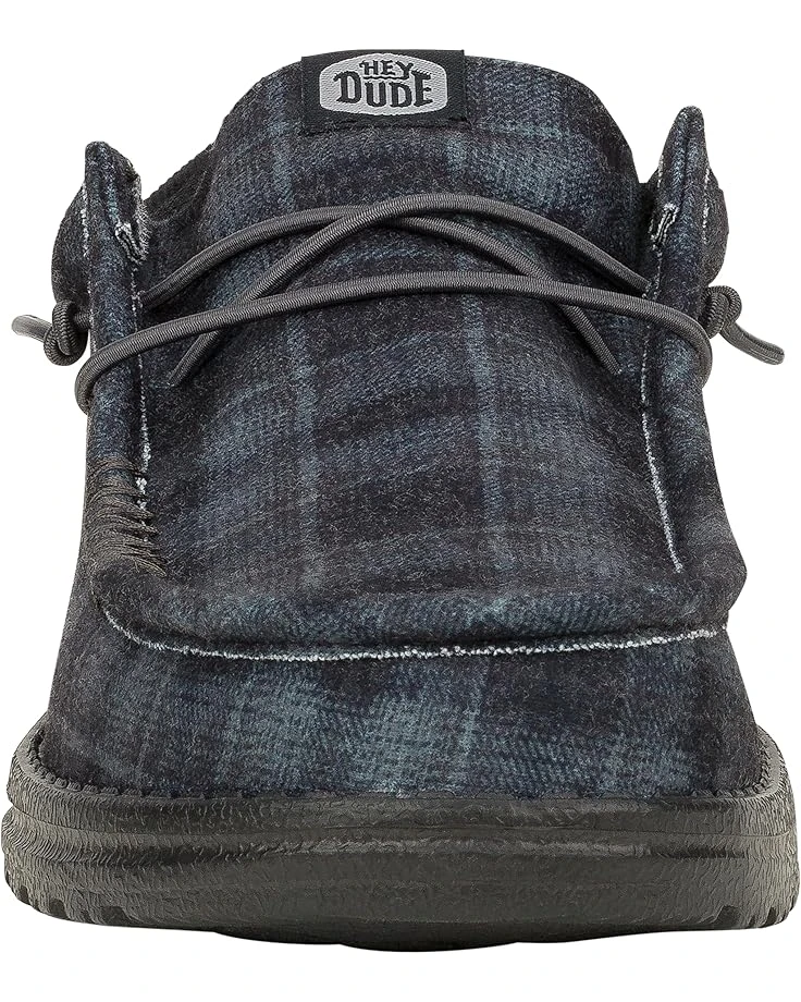- Step out with whimsical flair wearing the Hey Dude® Wally Funk Waffle Lifestyle Sneakers. The pull-on footwear features canvas upper with fixed elastic lace construction and moc toe silhouette.