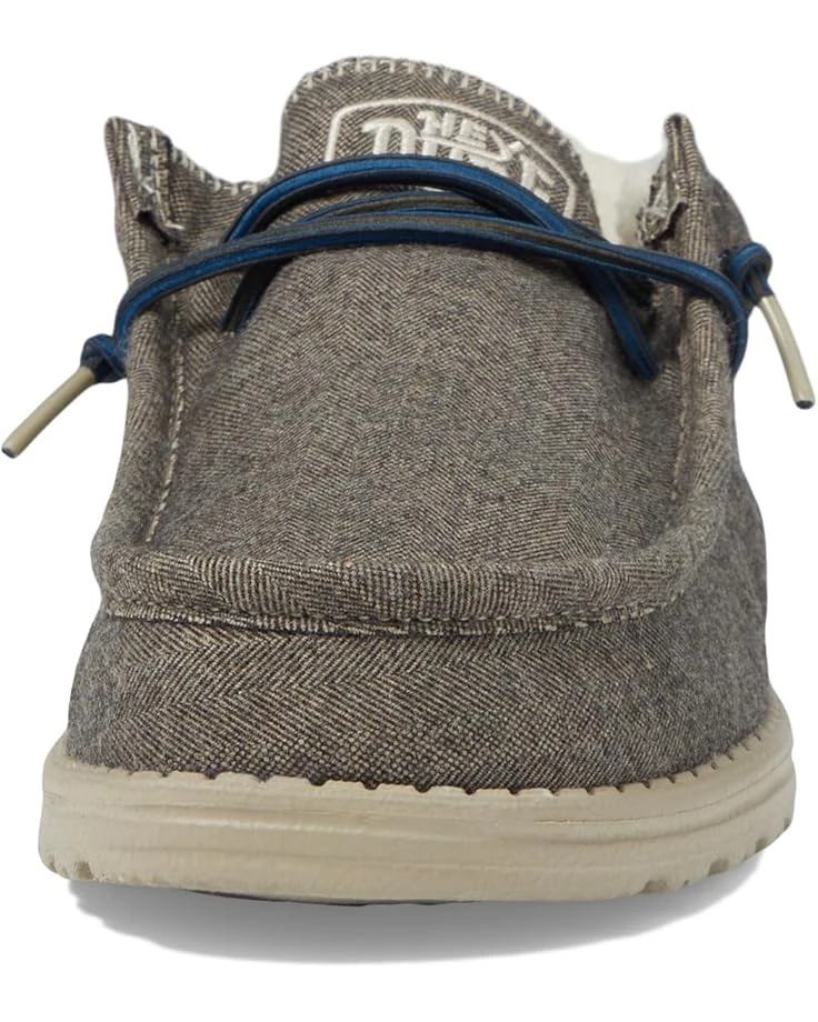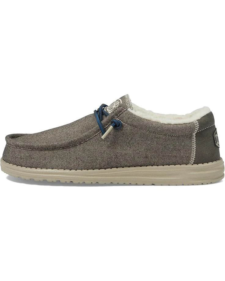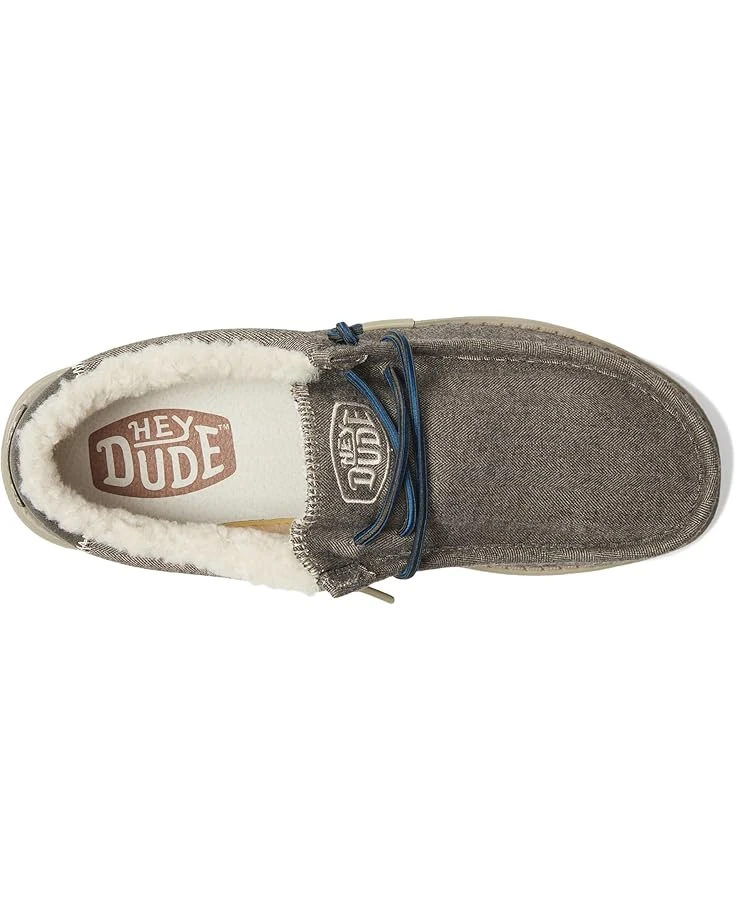 - The Hey Dude® Wally Herringbone come in a minimalist style and feature a moc toe shape and lace-detailing. These are crafted with a polyester, rayon, wool, or spandex upper, faux fur lining, and removable leather and textile insole.