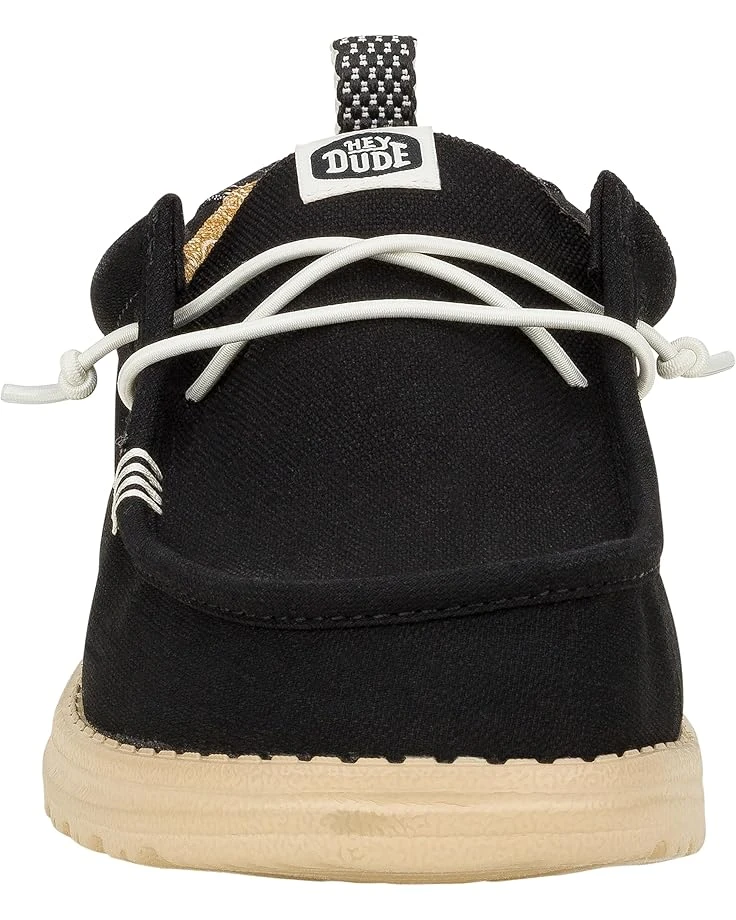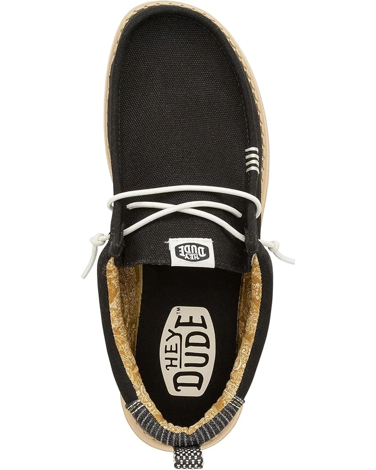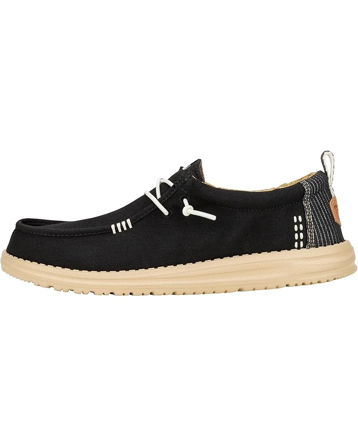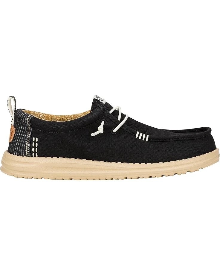 - Keep things casual in the Hey Dude® Wally Hickory Denim shoes. Featuring a lightweight canvas upper, breathable cotton lining, and a removable memory foam cushioned insole for lasting comfort.