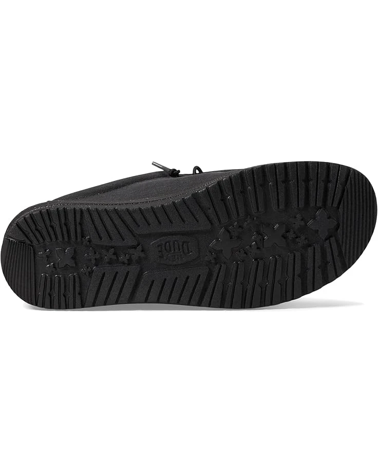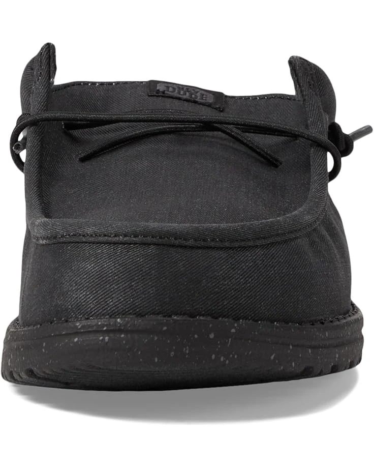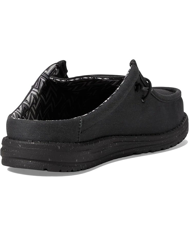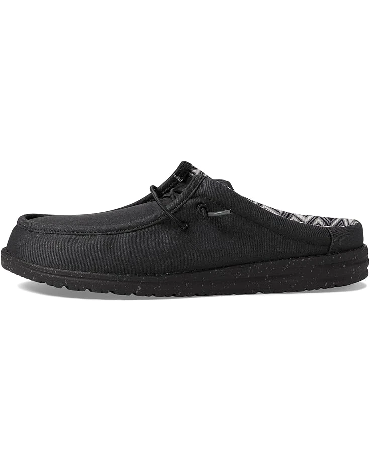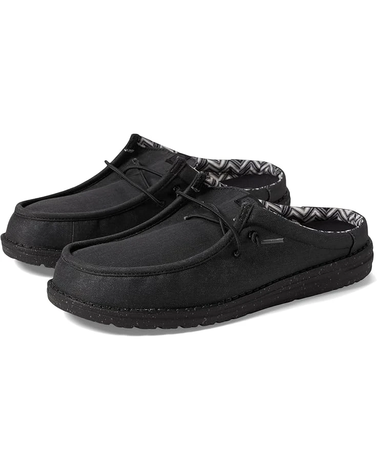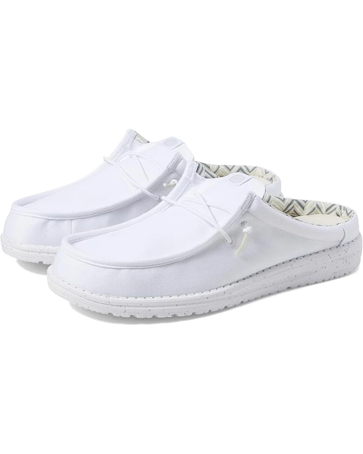 - Give yourself a special treatment wearing Hey Dude® Wally Slip Canvas footwear. It features moc toe, slide-on style, and open back. A textile upper, removable memory foam cushioned insole, and textile lining provides maximum comfort. Elastic laces with two eyelets ensure right fit for every feet shape.