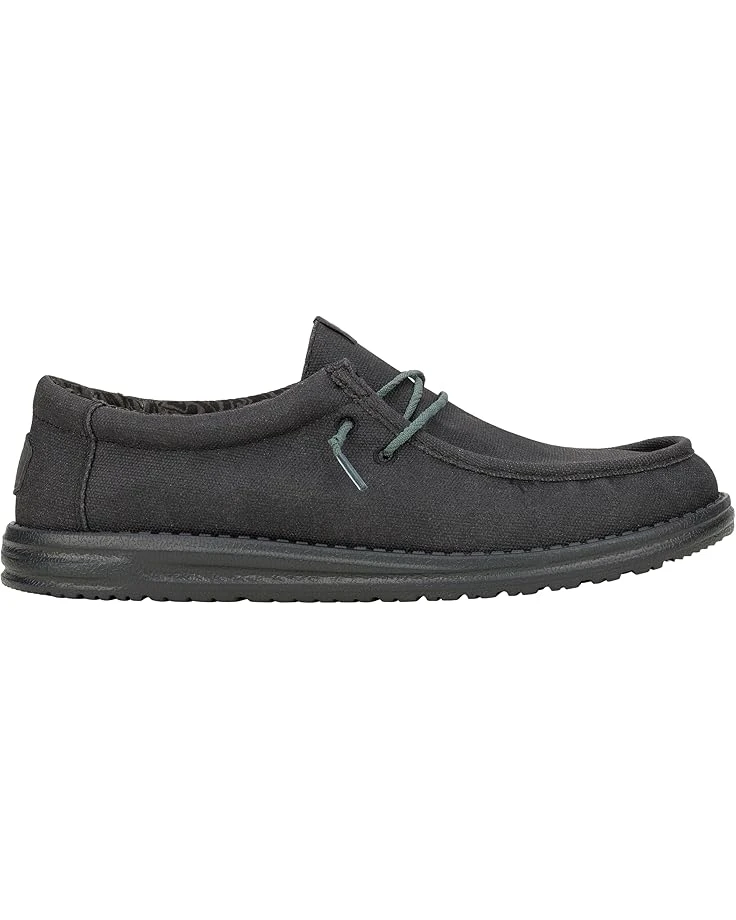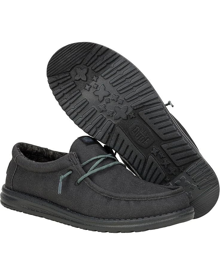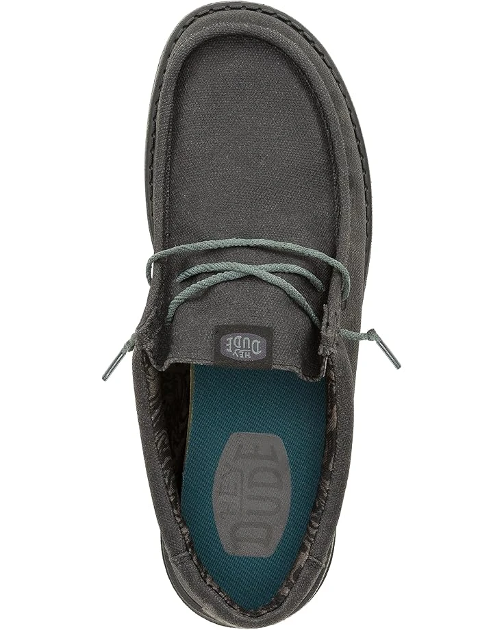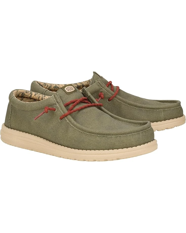 - Step out in style and comfort choosing the Hey Dude® Wally Waxed Canvas sneakers. Made with canvas upper and textile lining, these sneakers are lightweight and soft, perfect for all-day wear. The removable memory foam cushioned insole ensures maximum comfort while reducing sweating and odors. The unique Flex & Fold design supports healthy feet, giving complete freedom of movement.