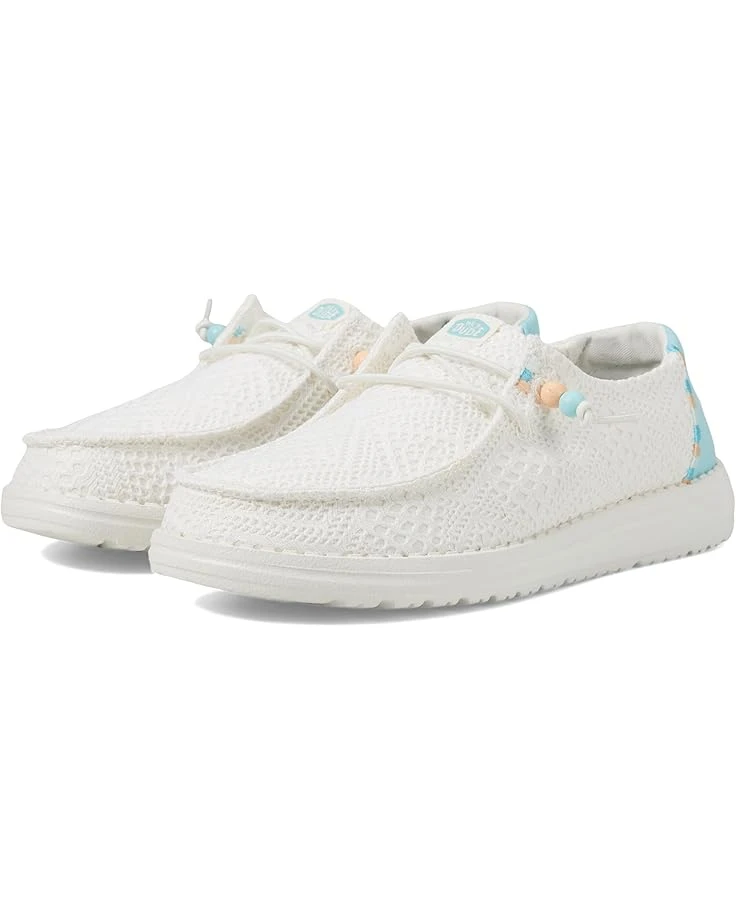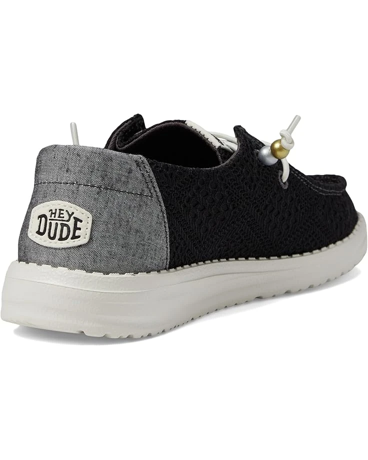 - Elevate your look in an exceptional smart way with this Hey Dude® Wendy Boho Crochet. This trendsetting and classy loafers are designed with lace-up closure, brand detailing on the footbed, and removable textile insole.